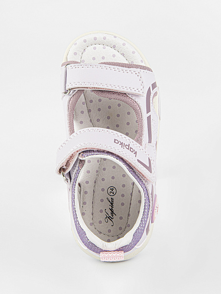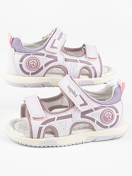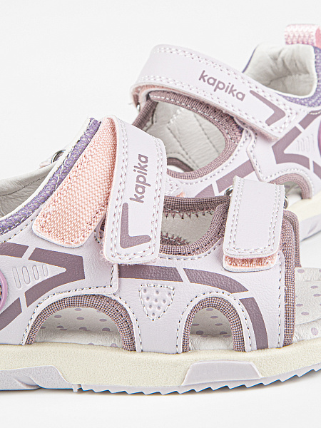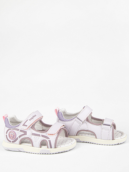 Сандалии сиреневого цвета в спортивном стиле. Липучки надежно фиксируют модель на ножке. Открытая носочная часть и высокая закрытая пятка. Верх выполнен из качественной экокожи. Стелька и подкладка - из натуральной кожи. Прочная и долговечная подошва из термоэластопласта.