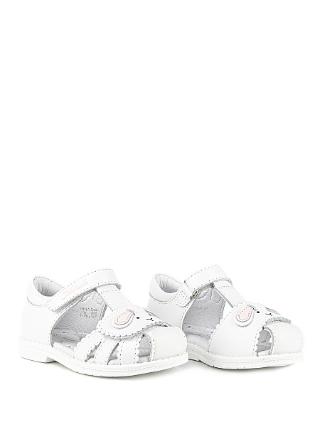 Сандалии для девочки изготовлены из натуральной кожи (верх, подкладка и стелька). Сандалии имеют жесткий задник и подсводник для поддержки и формирования правильной формы стопы. Подошва произведена из термопластичной резины (TPR), что обеспечивает долговечность и хорошее сцепление с поверхностью.