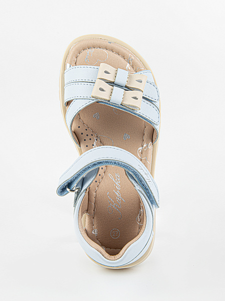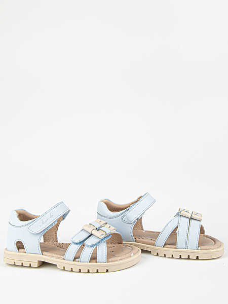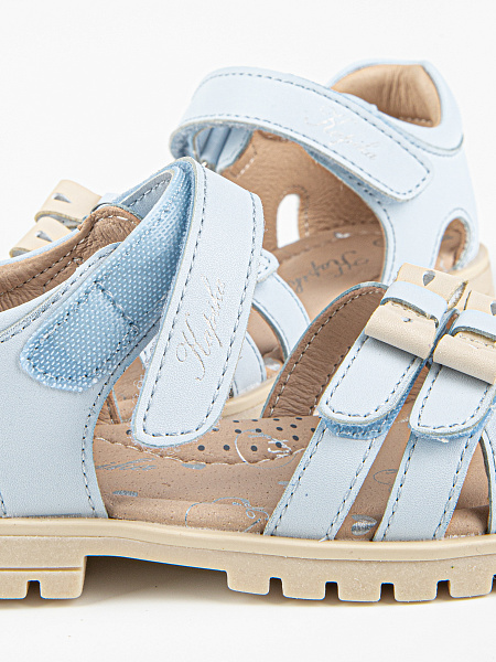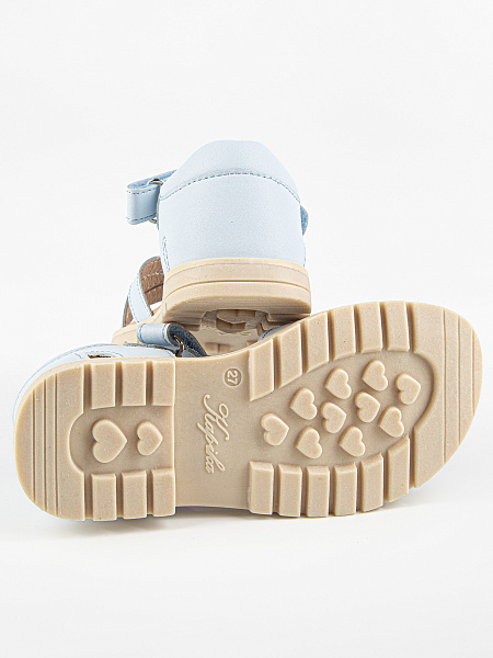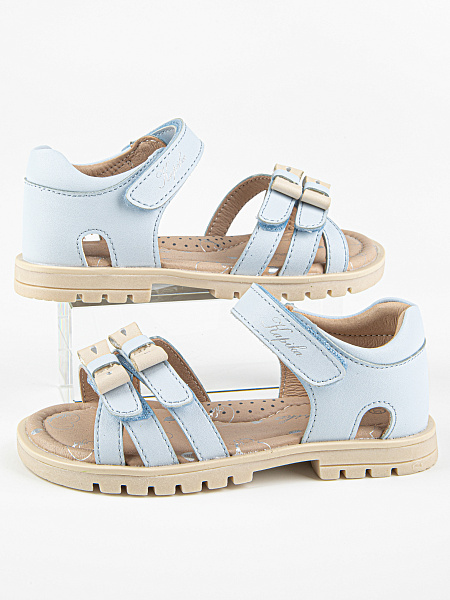 Лаконичные сандалии голубого цвета. Открытая носочная часть и высокая закрытая пятка. Стелька и подкладка выполнены из натуральной кожи, что обеспечивает комфорт и экологичность. Верх изделия выполнен из качественной экокожи. Подошва из термоэластопласта обеспечивает устойчивость и долговечность в носке.