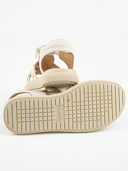 Открытая лаконичная модель босоножек бежевого цвета. Верх изделия выполнен из качественной экокожи. Подкладка и стелька из натуральной кожи, что обеспечивает комфорт и экологичность. Подошва из резины очень гибкая и стойкая к износу.