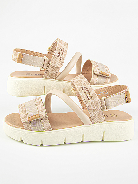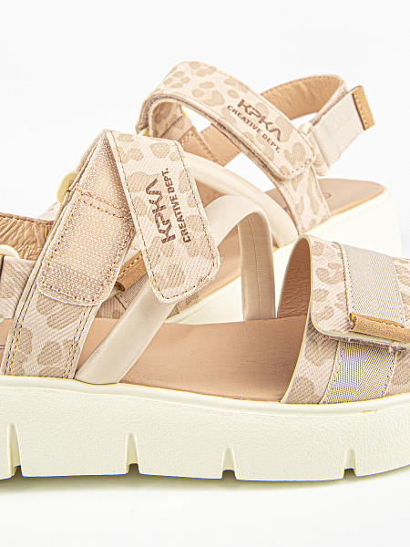 Открытые сандалии розового цвета с анималичтиным принтом. Верх изделия выполнен из качественных искусственных материалов. Подкладка и стелька выполнены из натуральной кожи, что обеспечивает комфорт в жаркую погоду. Массивная подошва тх комбинации материалов ЭВА и резина обеспечивает гибкость, легкость, прекрасную амортизацию и износостойкость.