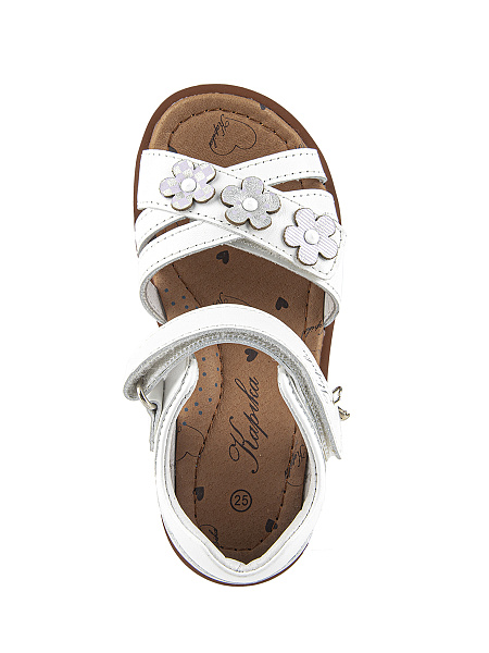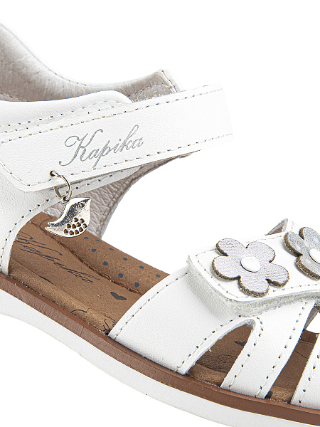 Сандалии для девочки изготовлены из натуральной кожи (верх, подкладка и стелька). Сандалии имеют жесткий задник и подсводник для поддержки и формирования правильной формы стопы. Подошва произведена из термопластичной резины (TPR), что обеспечивает долговечность и хорошее сцепление с поверхностью.