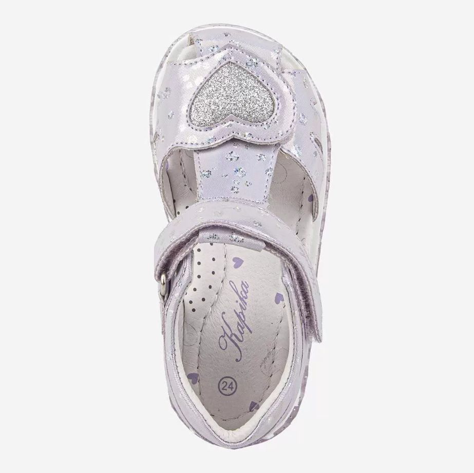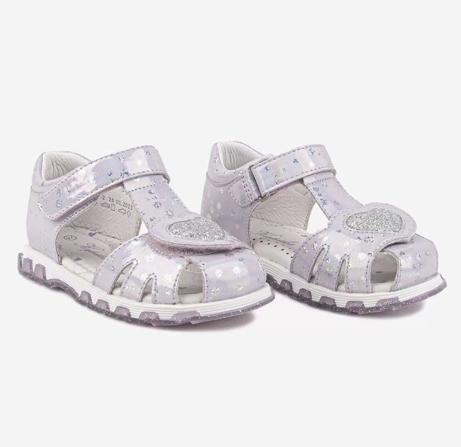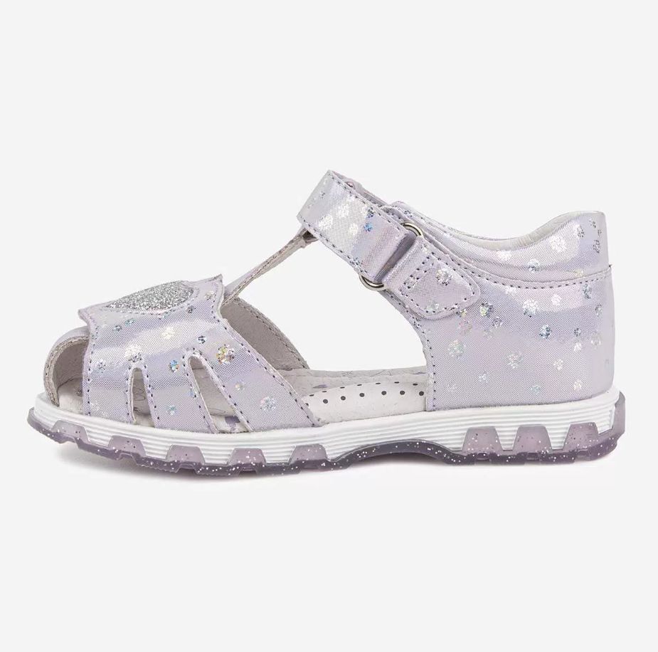 Сандалии для девочки с с верхом из высокопрочной искуственной кожи. Подкладка и стелька из натуральной кожи. Жесткий задник и подсводник обеспечивают правильную постановку стопы и комфорт. Долговечная ТЭП подошва продлевает срок службы обуви.