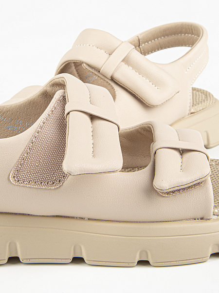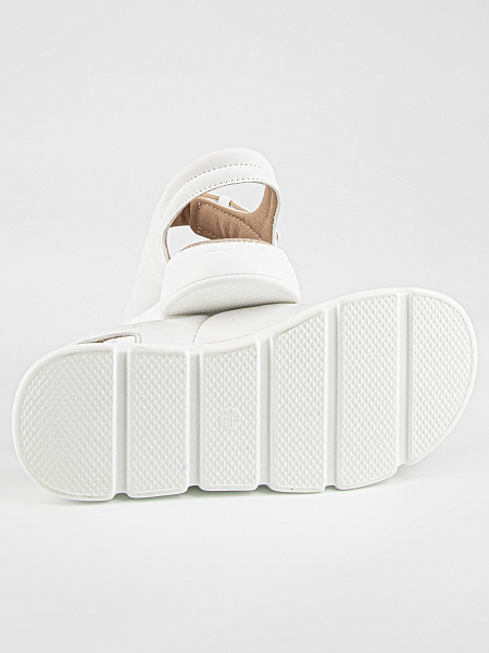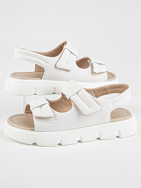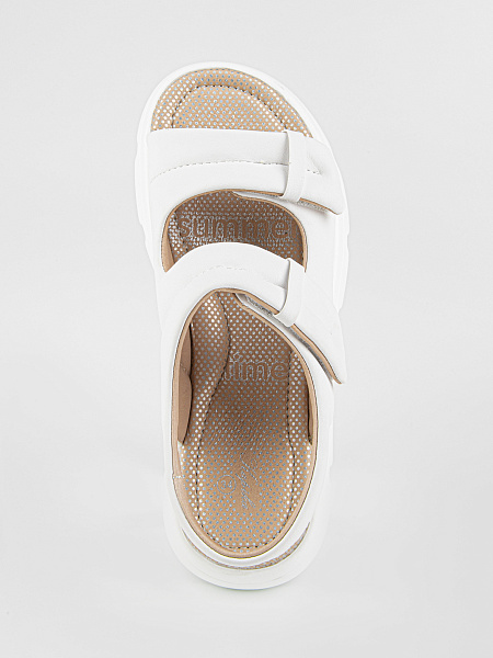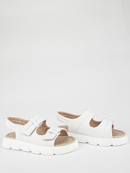 Босоножки белого цвета с минималистичным дизайном. Массивная подошва из комбинации материалов ЭВА и резина легкая, гибкая и стойкая к истиранию, обеспечивает хорошую амортизацию при ходьбе. Верх изделия выполнен из качественной экокожи. Подкладка и стелька из натуральной кожи, что позволяет ножкам дышать.