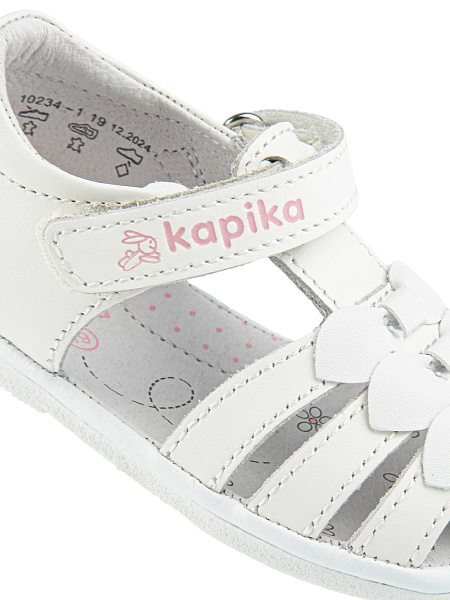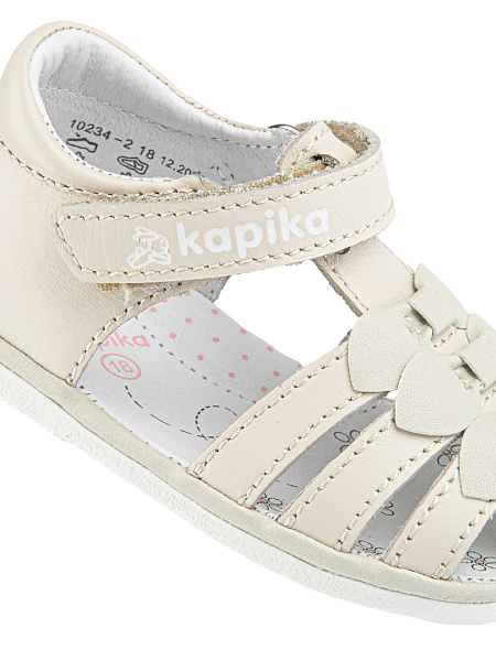 Кожаные босоножки на первый шаг удовлетворяют всем требованиям этой категории: жесткий задник и наличие подсводника обеспечивают правильную фиксацию стопы и профилактический эффект для всего опорно-двигательного аппарата. Застежки- липучки позволяют регулировать обувь по полноте. ТЭП подошва обеспечивает долговечность и гибкость, оставаясь при этом довольно легкой.
