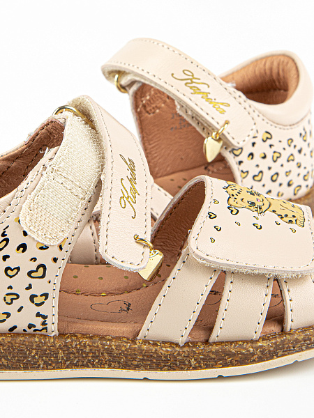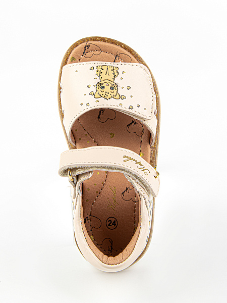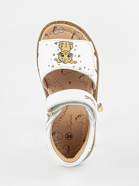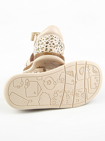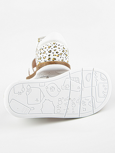 Легкие сандалии с открытой носовой частью и высокой закрытой пяткой. Выполнены полностью из натуральной кожи. Внутри имеется подсводник, который поддерживает продольный свод стопы и обеспечивает правильное положение ноги ребенка при ходьбе. Надежная подошва из термоэластопласта защищает от неровностей, отличается долговечностью и устойчивостью к износу.